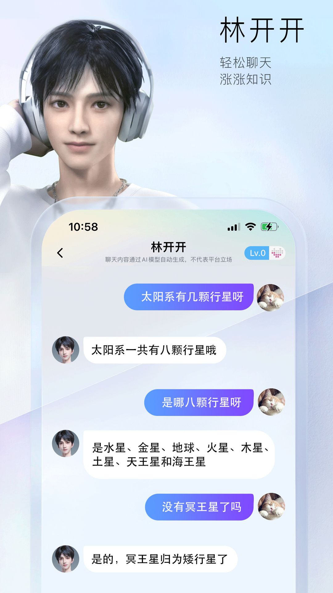 - 虚拟人聊天:用户可以与AI虚拟角色林开开和叶悠悠进行自然的语言交流,讨论各种话题。