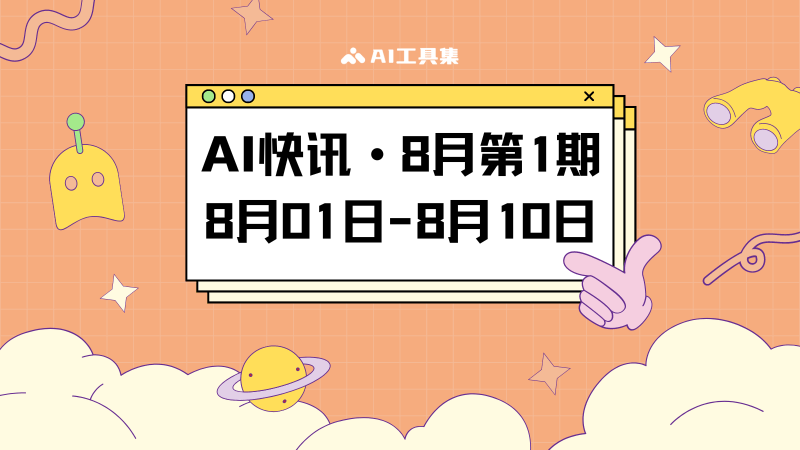 AI工具集采用每月3期的版面集合,每日更新AI行业的最新快讯,本期为8月第1期(8月1日到8月10日)的AI行业新闻集合。