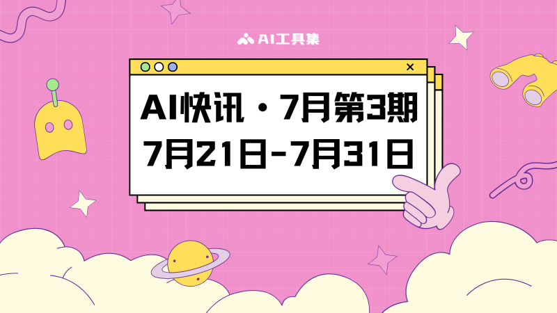 AI工具集采用每月3期的版面集合,每日更新AI行业的最新快讯,本期为7月第3期(7月21日到7月31日)的AI行业新闻集合。