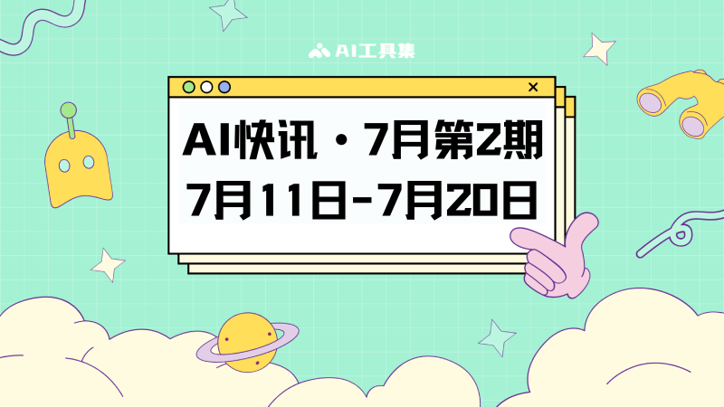 AI工具集采用每月3期的版面集合,每日更新AI行业的最新快讯,本期为7月第2期(7月11日到7月20日)的AI行业新闻集合。
