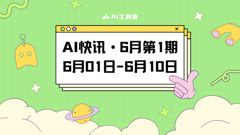 AI工具集采用每月3期的版面集合,每日更新AI行业的最新快讯,本期为6月第1期(6月1日到6月10日)的AI行业新闻集合。
