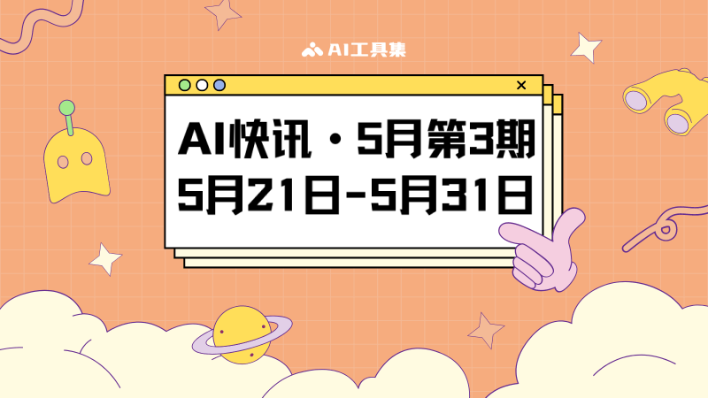 AI工具集采用每月3期的版面集合,每日更新AI行业的最新快讯,本期为5月第3期(5月21日到5月31日)的AI行业新闻集合。