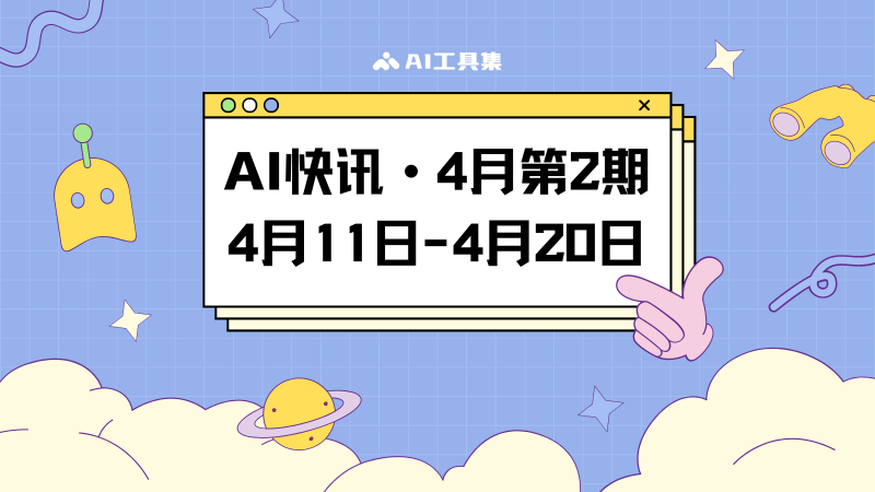 AI工具集采用每月3期的版面集合,每日更新AI行业的最新快讯,本期为4月第2期(4月11日到4月20日)的AI行业新闻集合。