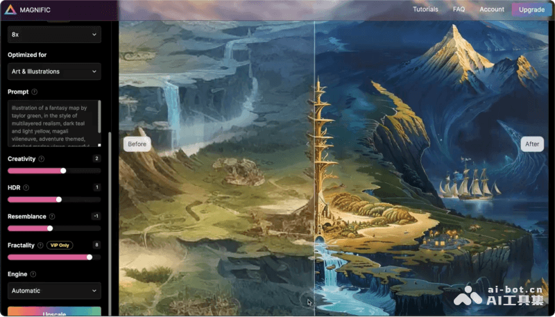 Magnific AI是一个功能和算法非常强大的AI图像放大变高清的工具,支持将图片最高放大到10000×10000像素(10K分辨率)。Magnific AI转换放大后的图片拥有高质量的细节,适合用于如高分辨率的打印和图片处理。该AI扩图工具虽然需要付费使用,但如果你对图像分辨率有高要求,值得一试。