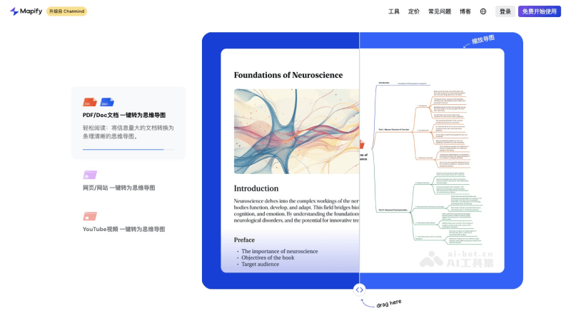 - 免费试用版:Mapify提供免费试用,用户注册后将免费获得10个AI积分用于试用和探索功能。