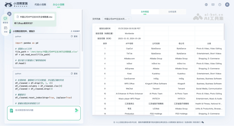 办公小浣熊是商汤科技继代码小浣熊AI编程助手后,为小浣熊家族最新引入的一款AI工具,旨在降低数据分析的门槛,提高工作效率,帮助用户快速获取洞察力。