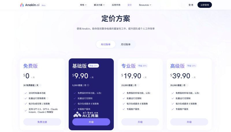 - 免费版:每天免费提供30的使用额度,可访问所有的基本功能、批量运行有限、每次生成仅限1张图像