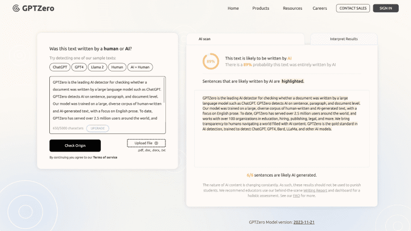 GPTZero的主要功能
